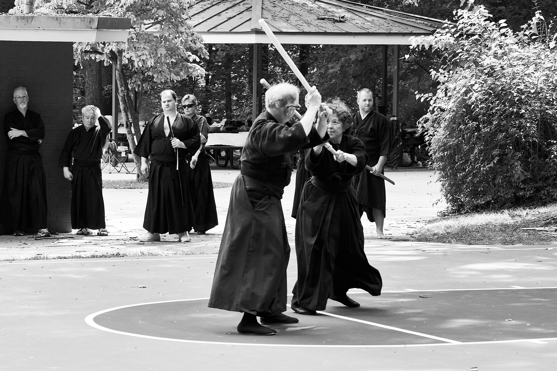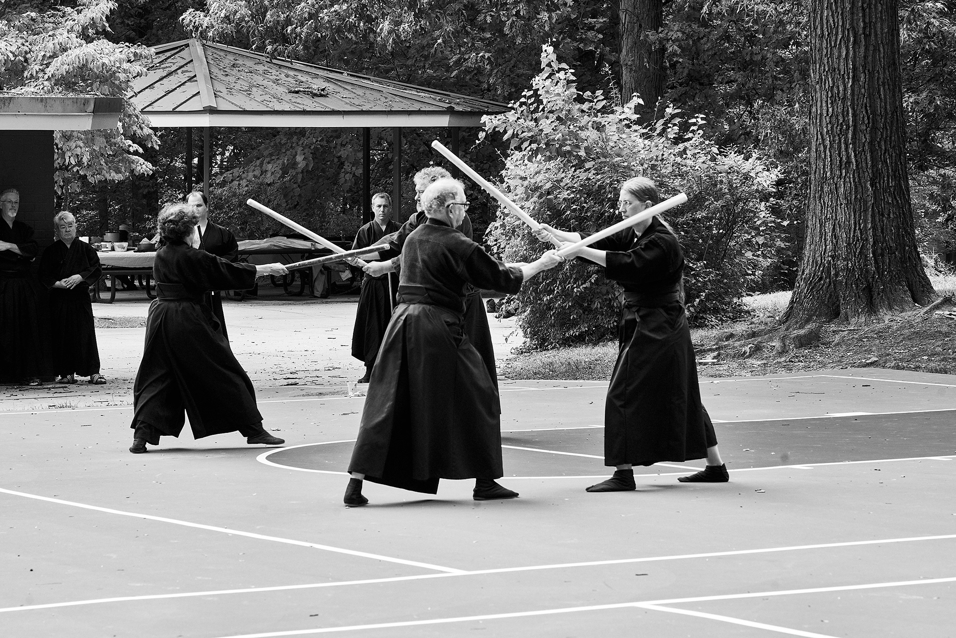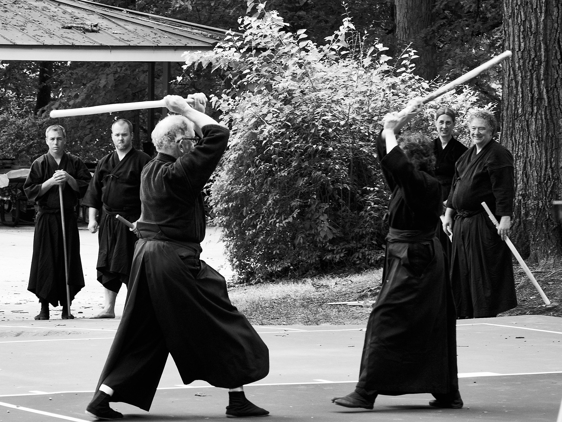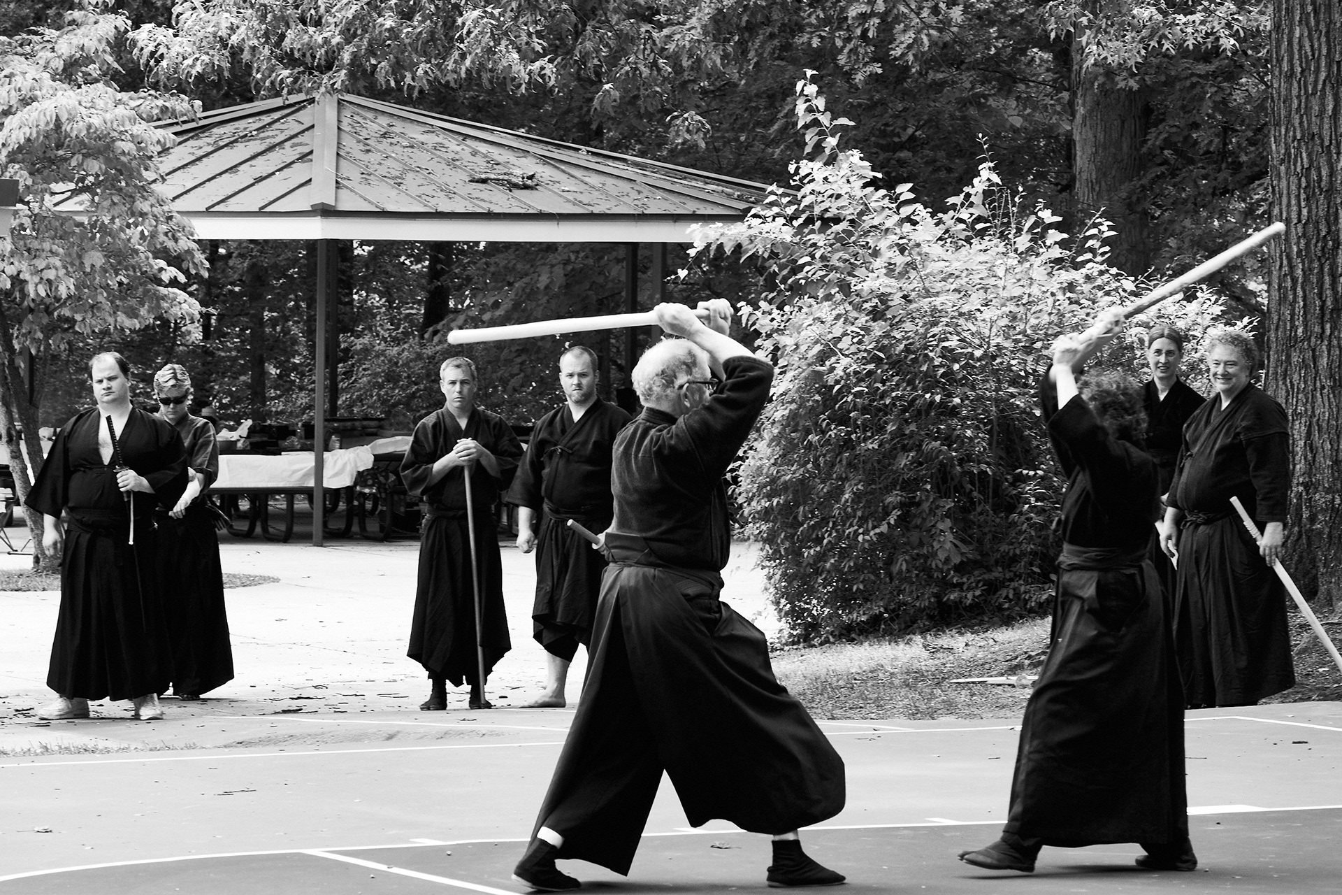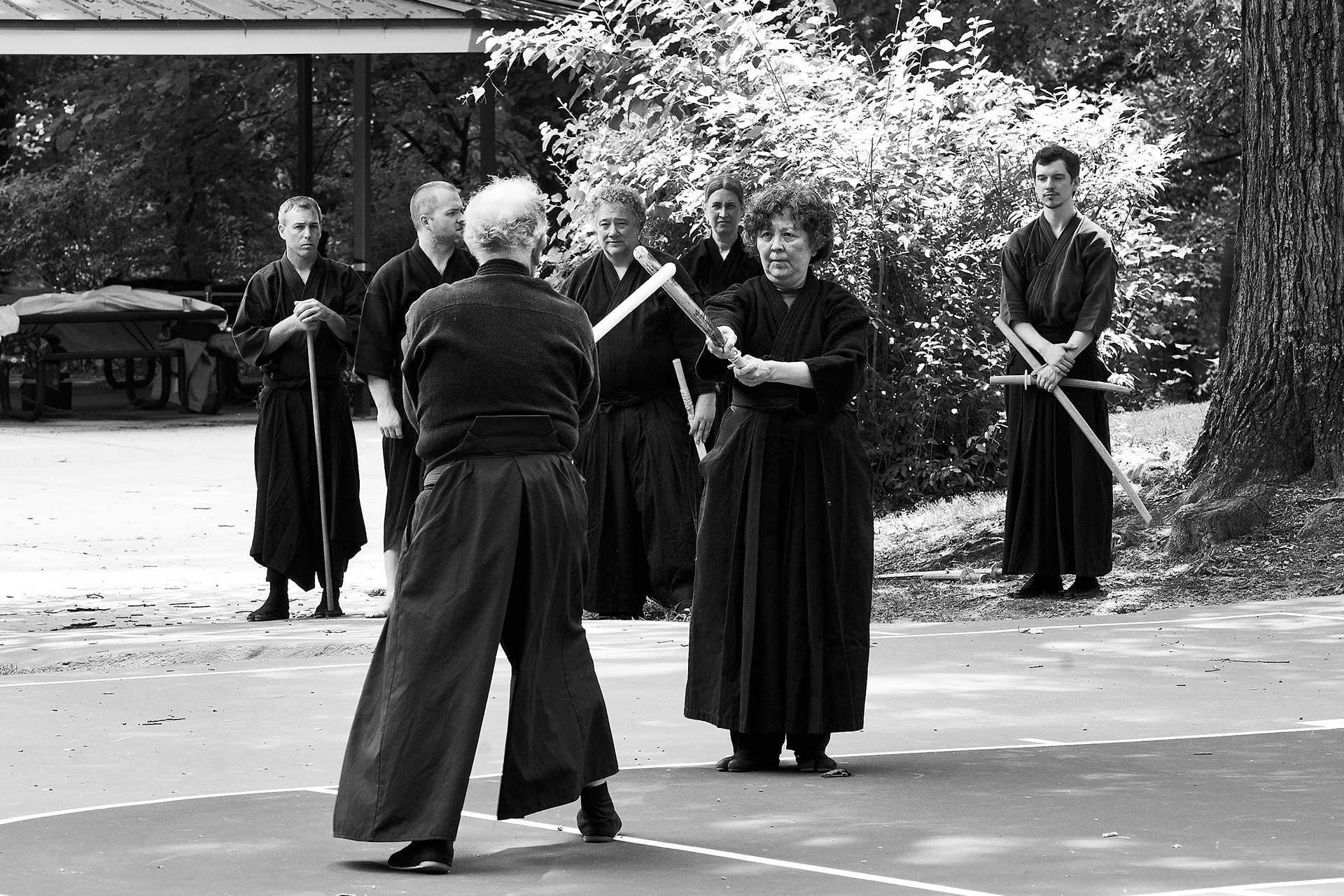 Public enbu in memorial to Karunakaran, senior Shindo Muso-ryu Jo student of Donn Draeger.