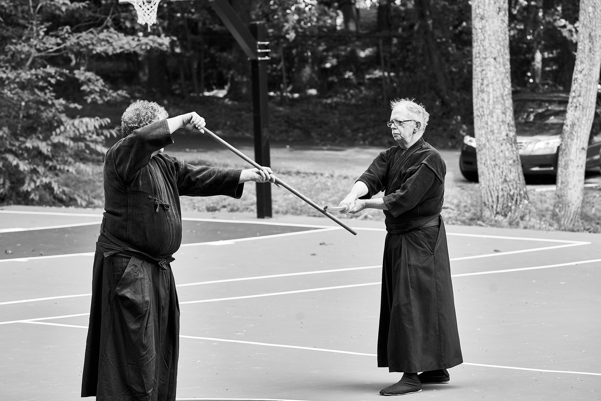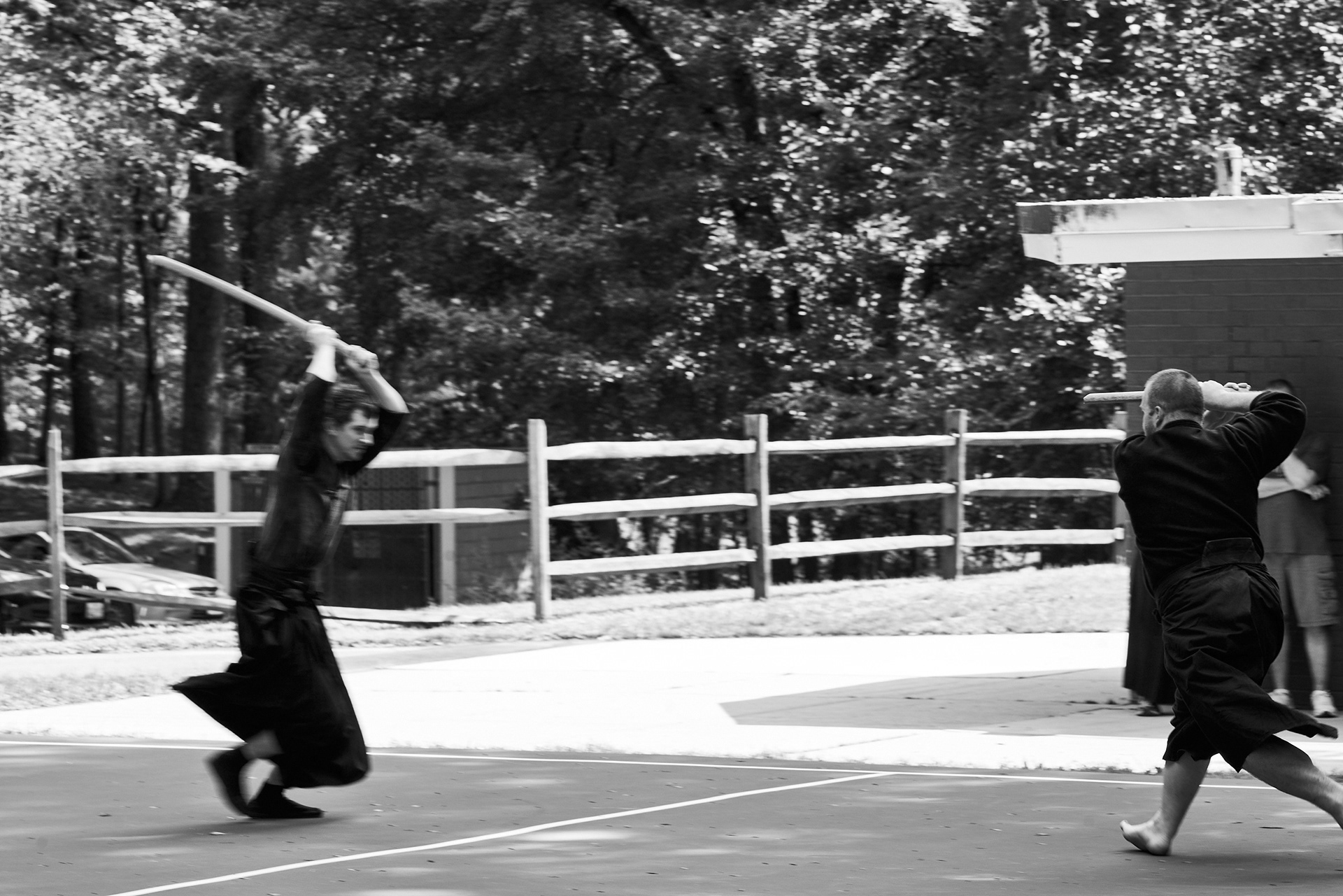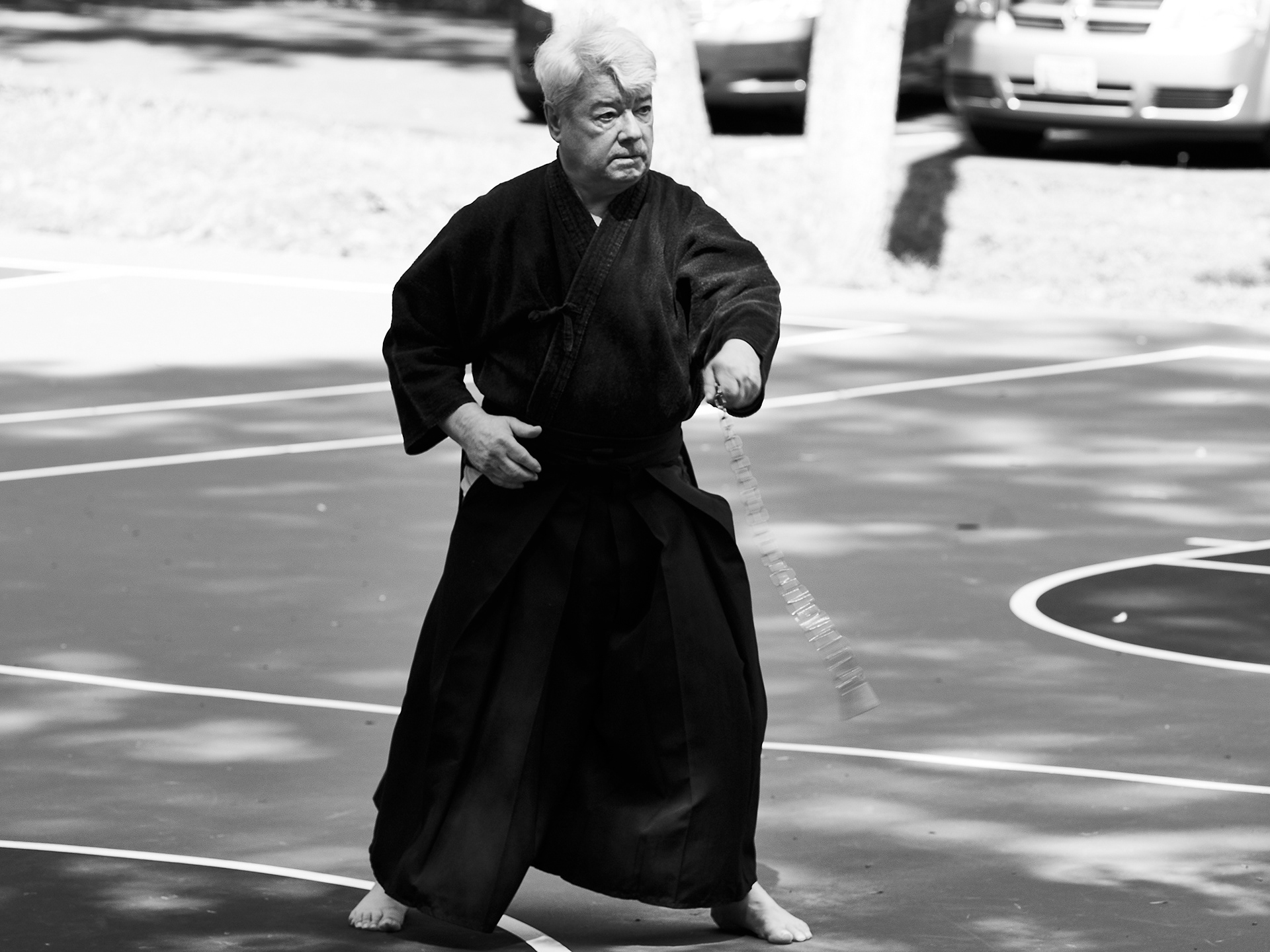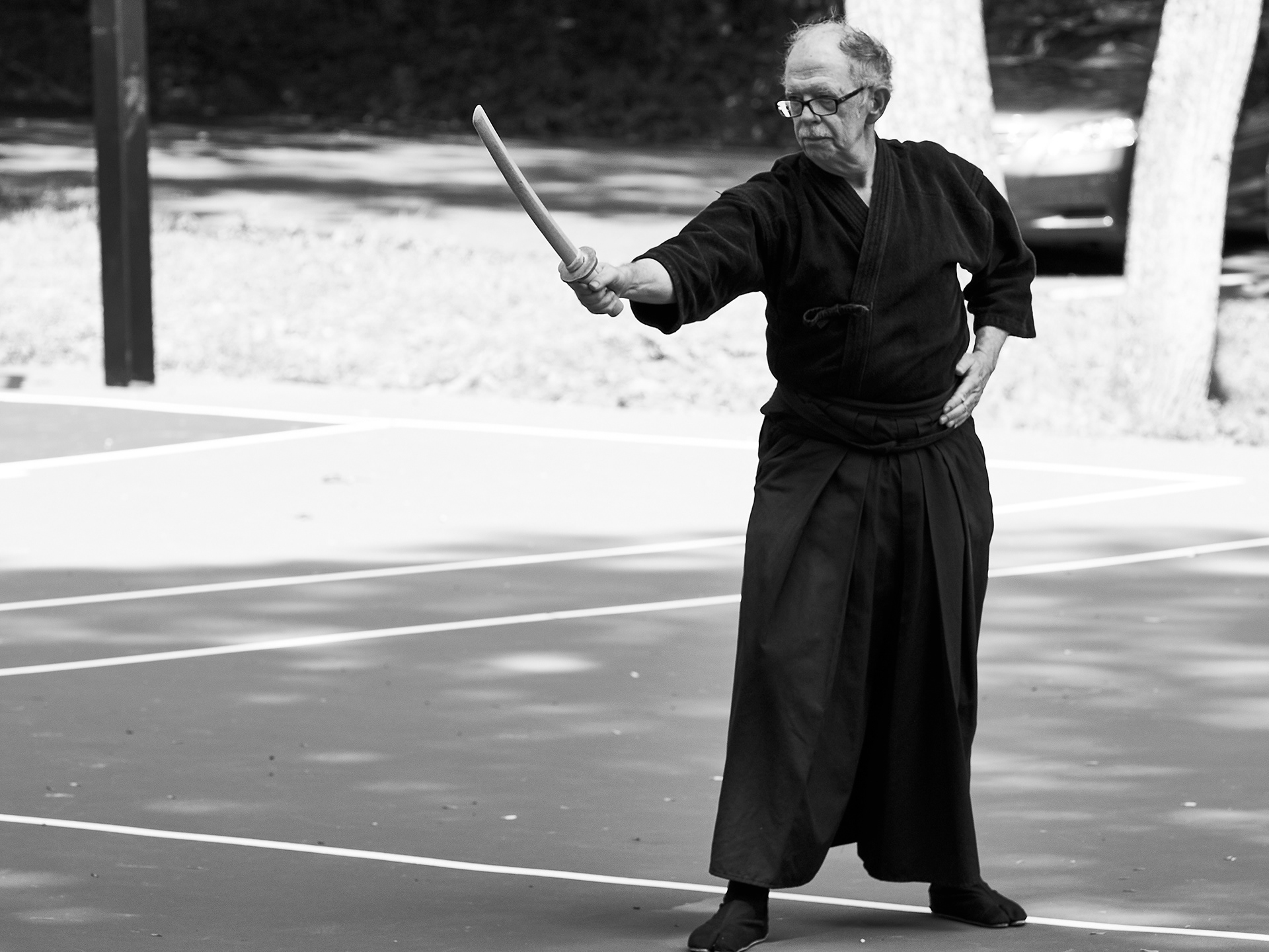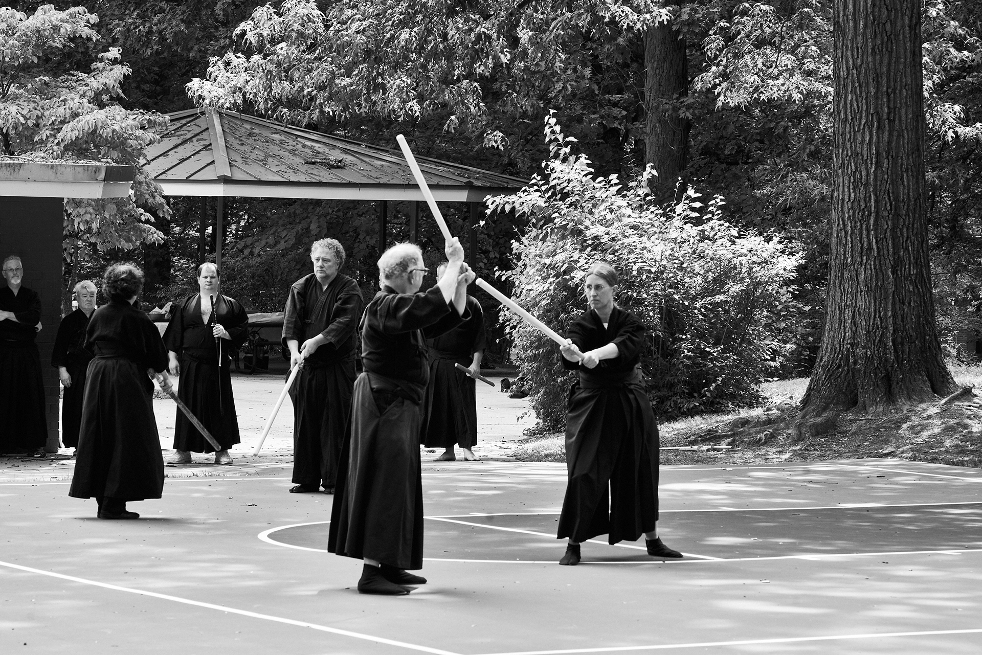 Public enbu in memorial to Karunakaran, senior Shindo Muso-ryu Jo student of Donn Draeger.