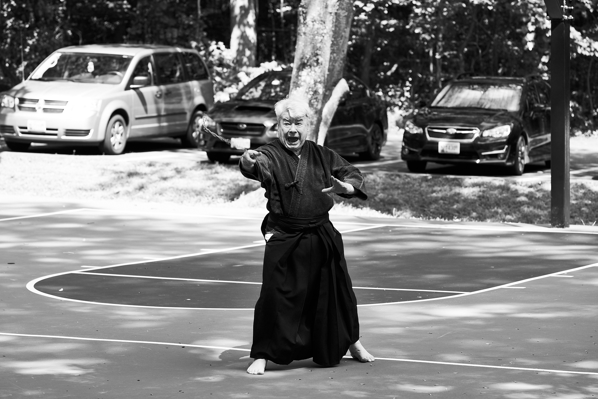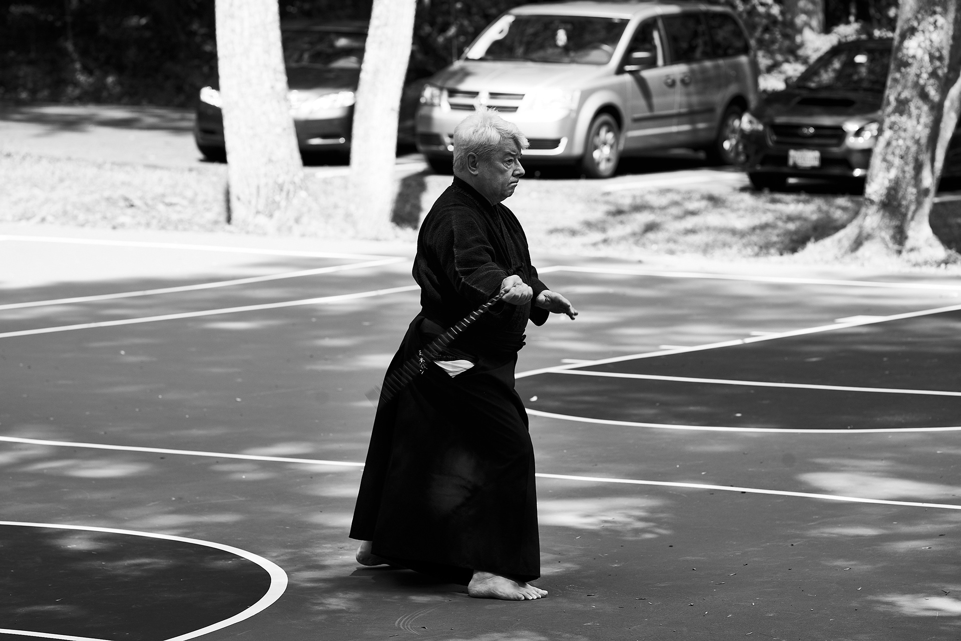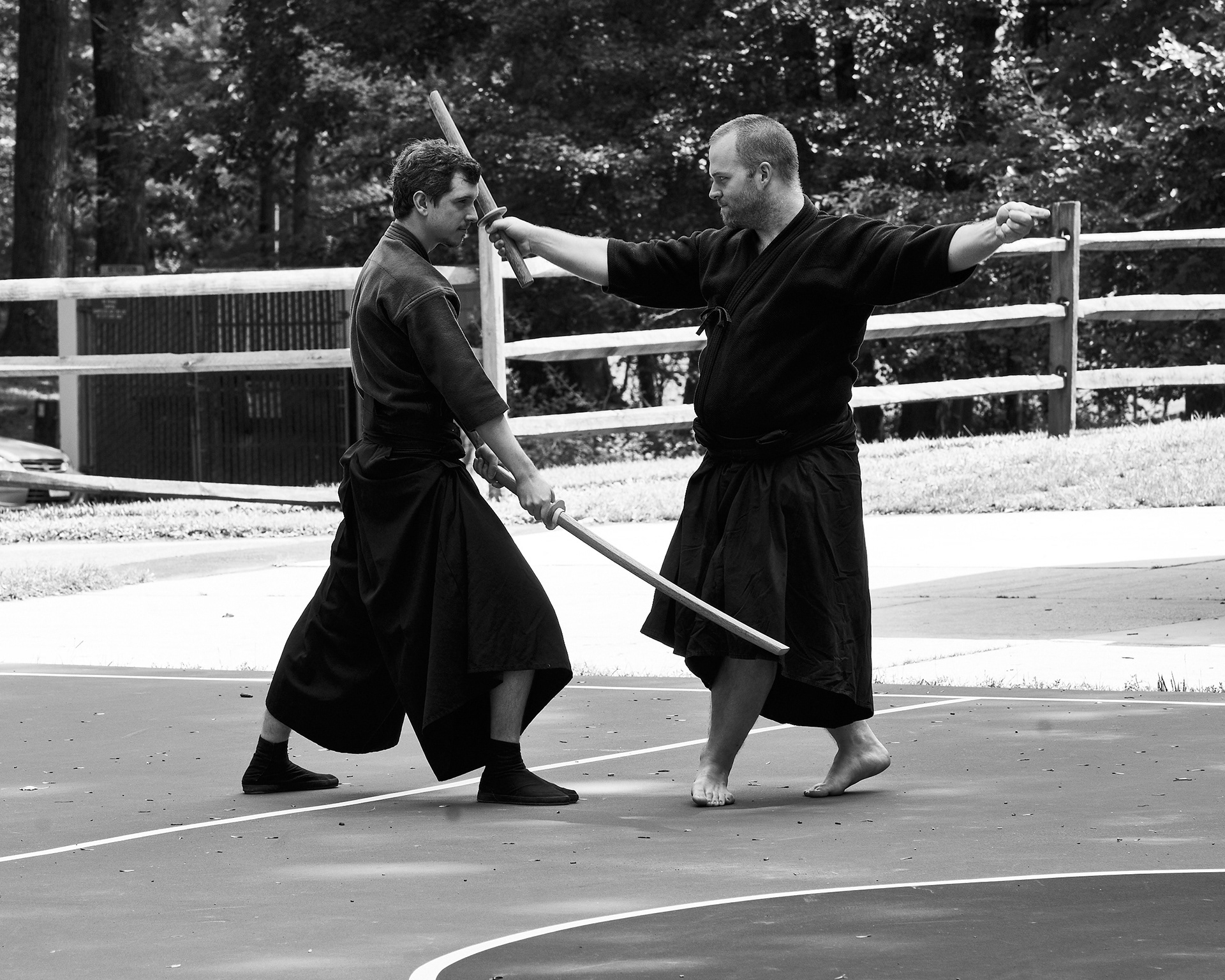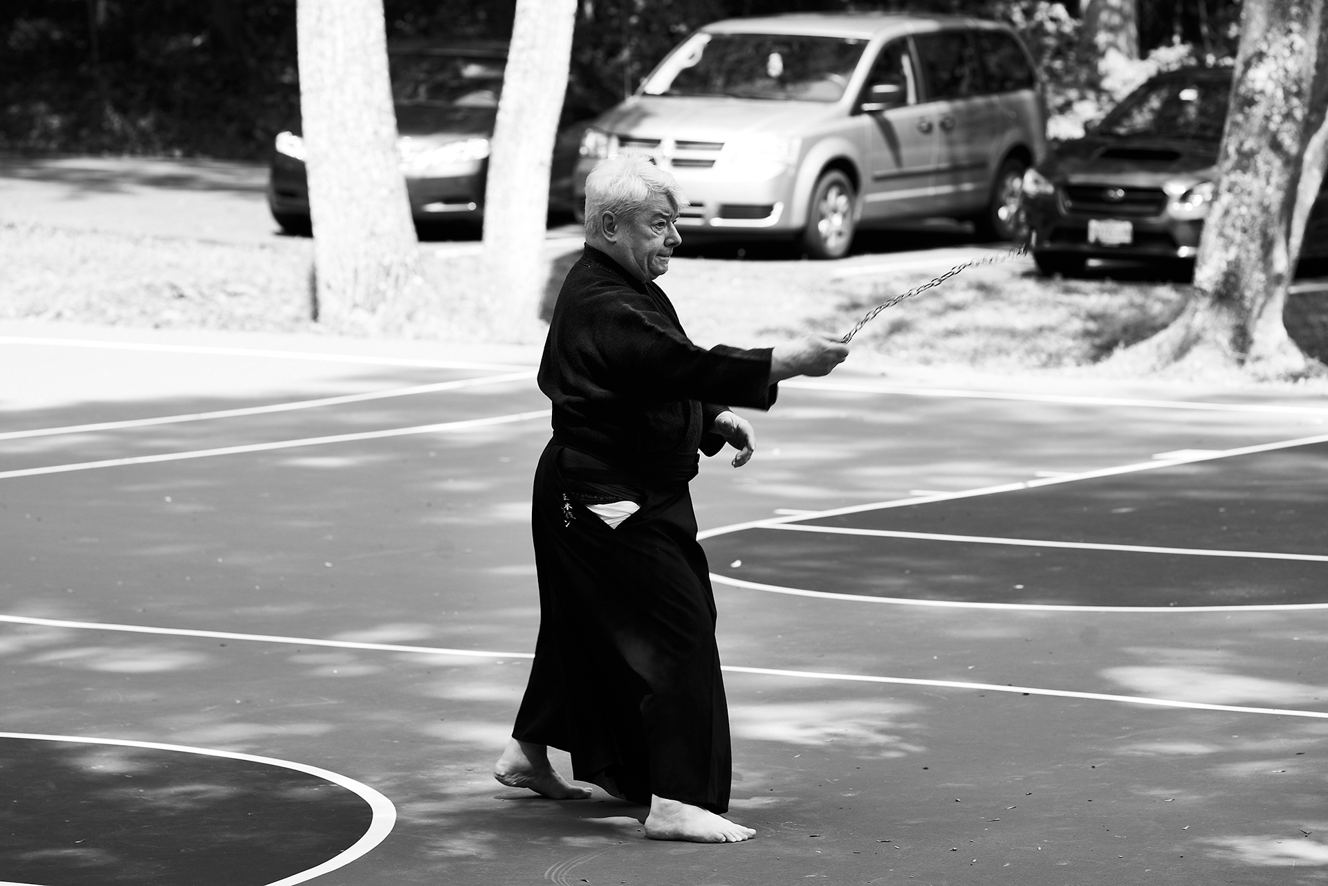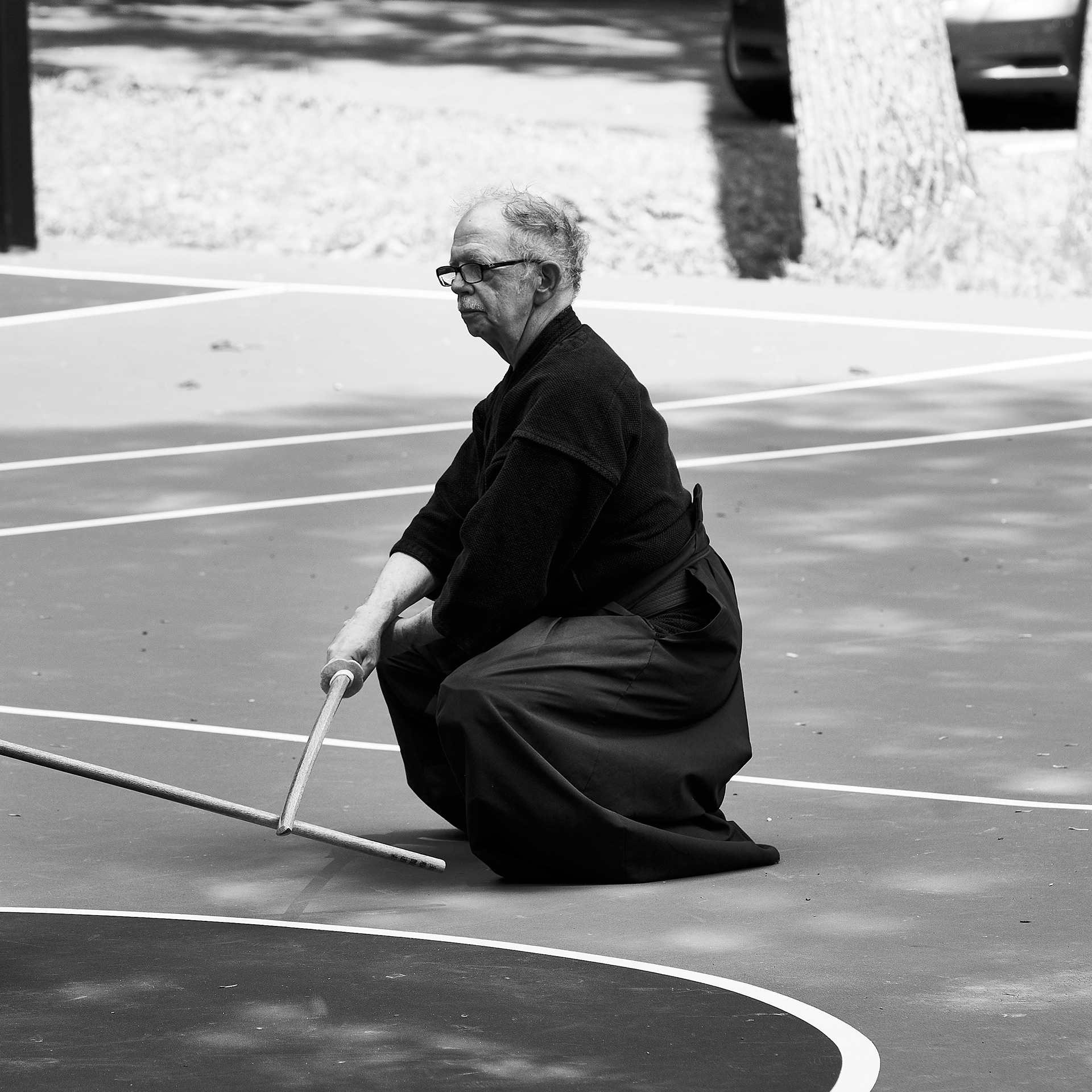 Public enbu in memorial to Karunakaran, senior Shindo Muso-ryu Jo student of Donn Draeger.